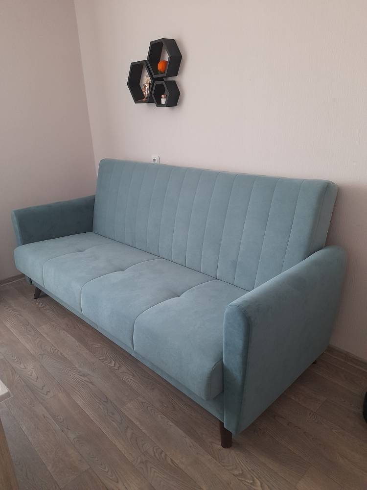 Aккуратный, вместительный, удобный, на ножках - как и хотела, цвет идеально вписался в гостиную и по размерам и по оттенку. Доставка и сборка спустя три дня после заказа - достаточно быстро. Мужчины-сборщики приехали в оговоренное время, быстро собрали, унесли всю упаковку. Как же приятно на нем отдыхать, ткань Велюр мягкая, приятная, диван с независимым пружинным блоком раскладывается в полноценное спальное место для двух гостей. Спасибо, я очень рада!