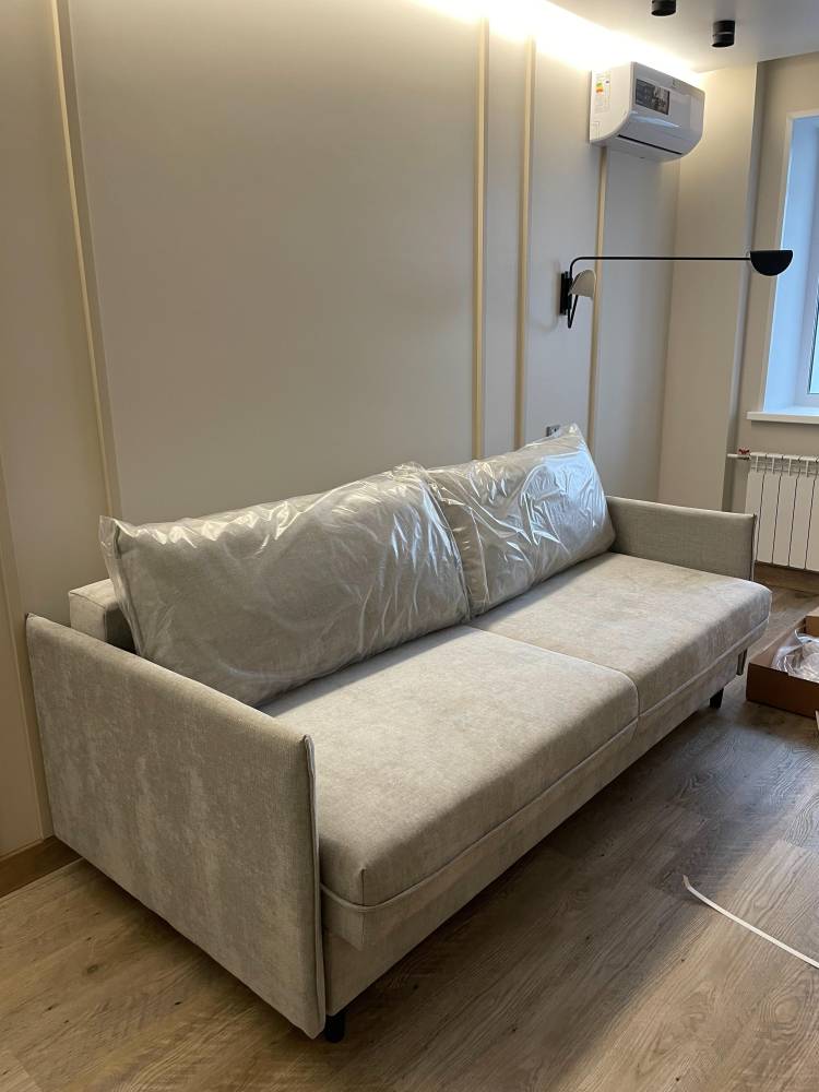 привезли диван в разобранном виде, очень хорошо упакован в короба, т. е. любые повреждения и загрязнения во время транспортировки полностью исключены. Ребята доставщики занесли диван в квартиру, собрали его и забрали с собой весь упаковочный материал. Спасибо, что не пришлось даже выносить мусор. Самим диваном пользуюсь почти месяц. Сказать, что я очень довольна, ничего не сказать. Мало того, что он очень красивый и функциональный, так ещё и невероятно удобный. И сидеть, и спать на нем одно удовольствие. Раскладывается легко. Благодаря высоким ножкам, легко убрать под диваном. Есть вентиляционные отверстия в коробе дивана и дополнительная спинка - защита стены. Огромная благодарность вам и производителю!!!