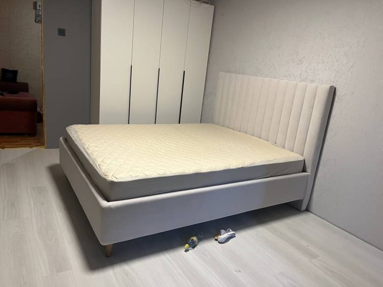 • Обивка кровати выполнена из мебельной ткани.