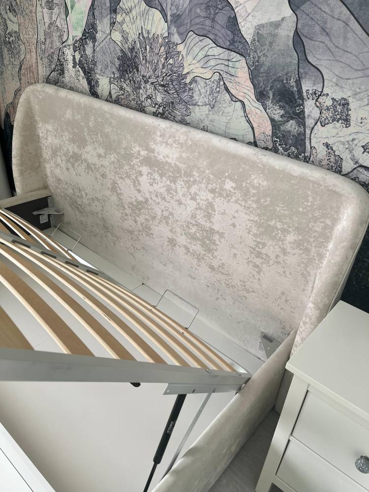 - Обратная сторона изголовья обита основной тканью, поэтому возможно свободное расположение кровати в комнате, не только у стены.