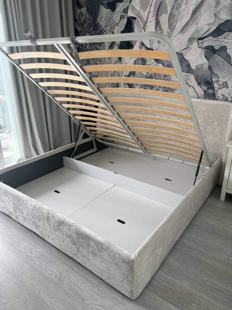- Дополнительно можно заказать подъемный механизм и бельевой ящик (глубина ящика составляет 14 см), чтобы использовать место под кроватью для хранения. Дно кровати раздвигается для простоты уборки.