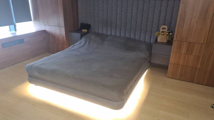 Кровать понравилась тем, что у нее нет изголовья, можно расположить в комнате в любом месте, подсветка служит ночником. Так как кровпть низкая рекомендую матрас взять повыше, у меня 18см матрас жесткий. Углы кровати закруглены,поэтому матрас подходит средней жесткости, так как жесткие матрасы с углами проблематично установить в основание.