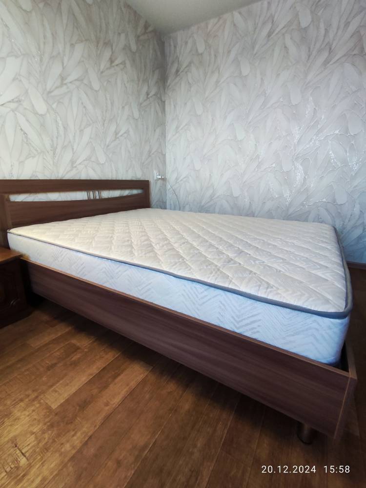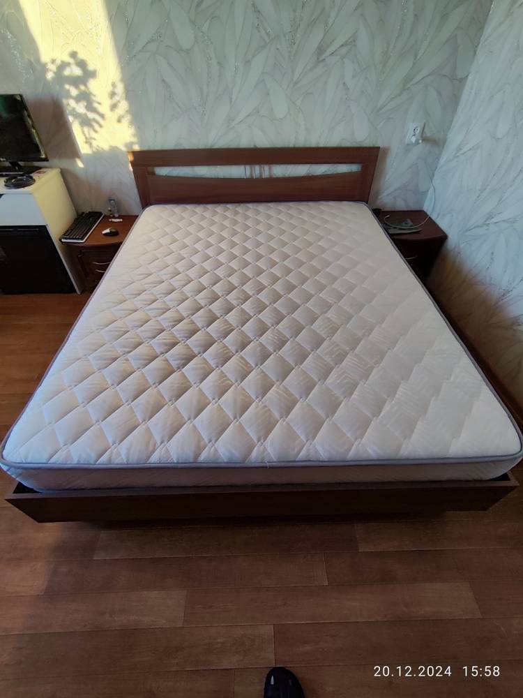 Сначала купили кровать, затем начали искать матрас на замену нашему старому. Читали отзывы, характеристики и остановили свой выбор на этом матрасе. Оформили,заказали, через две недели привезли,занесли в рулоне,распаковали. Отлежался сутки и вот мы на новом матрасе. Матрас понравился,высыпаемся отлично.