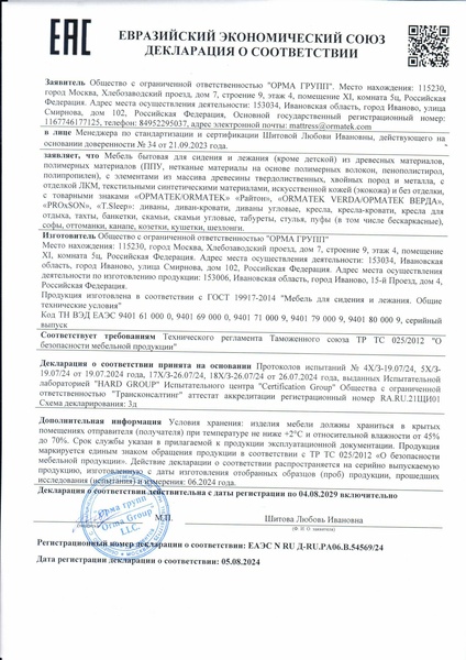 Сертификат соответствия ЛДСП. Класс эмиссии Е1